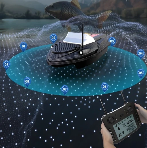 Funkcja GPS pozwala łatwo sterować łódką do wybranych punktów na zbiorniku wodnym.