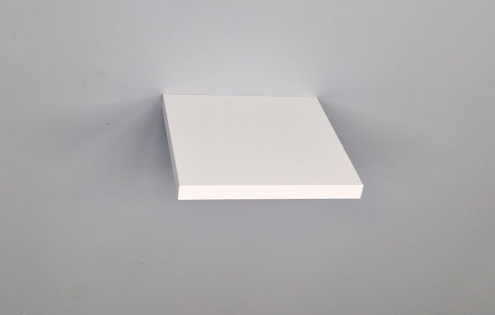 Półka posiada niewidoczne zawieszki, po zawieszeniu dolega całą powierzchnią do ściany (nie odstaje w miejscu zawieszek).