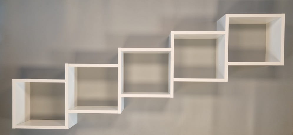 Półka posiada niewidoczne zawieszki z regulacją, po zawieszeniu dolega całą powierzchnią do ściany (nie odstaje w miejscu zawieszek).