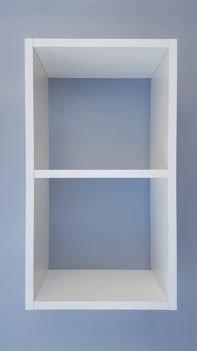 Półka posiada niewidoczne zawieszki z regulacją, po zawieszeniu dolega całą powierzchnią do ściany (nie odstaje w miejscu zawieszek).