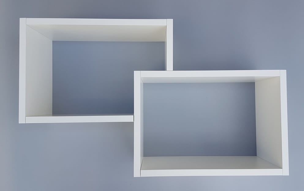 Półka posiada niewidoczne zawieszki z regulacją, po zawieszeniu dolega całą powierzchnią do ściany (nie odstaje w miejscu zawieszek).