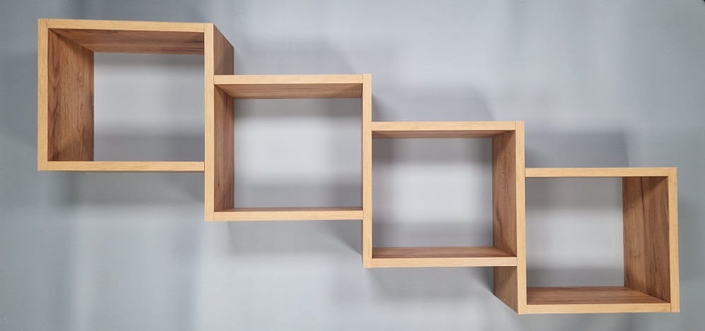 Półka wykonana jest z płyty laminowanej firmy Kronospan o grubości 18 mm, a krawędzie oklejone obrzeżem ABS o grubości 0,6 mm. Do złożenia półki służą konfirmaty (śruby) do których dołączone są zaślepki.