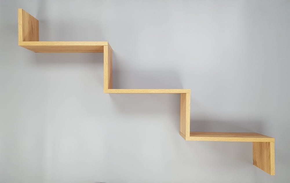 Półka posiada niewidoczne zawieszki z regulacją, po zawieszeniu dolega całą powierzchnią do ściany (nie odstaje w miejscu zawieszek).