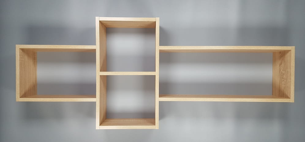Półka posiada niewidoczne zawieszki z regulacją, po zawieszeniu dolega całą powierzchnią do ściany (nie odstaje w miejscu zawieszek).