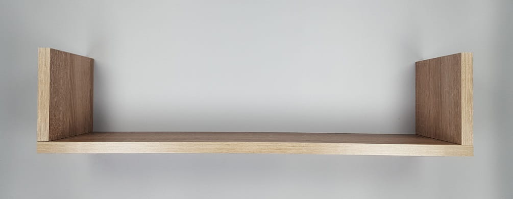 Półka wykonana jest z płyty laminowanej firmy Kronospan o grubości 18 mm, a krawędzie oklejone obrzeżem ABS o grubości 0,6 mm. Do złożenia półki służą konfirmaty (śruby) do których dołączone są zaślepki.