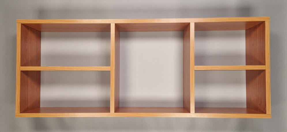 Półka posiada niewidoczne zawieszki z regulacją, po zawieszeniu dolega całą powierzchnią do ściany (nie odstaje w miejscu zawieszek).