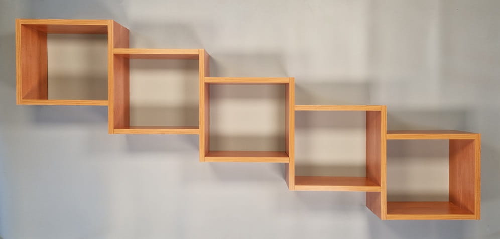 Półka posiada niewidoczne zawieszki z regulacją, po zawieszeniu dolega całą powierzchnią do ściany (nie odstaje w miejscu zawieszek).