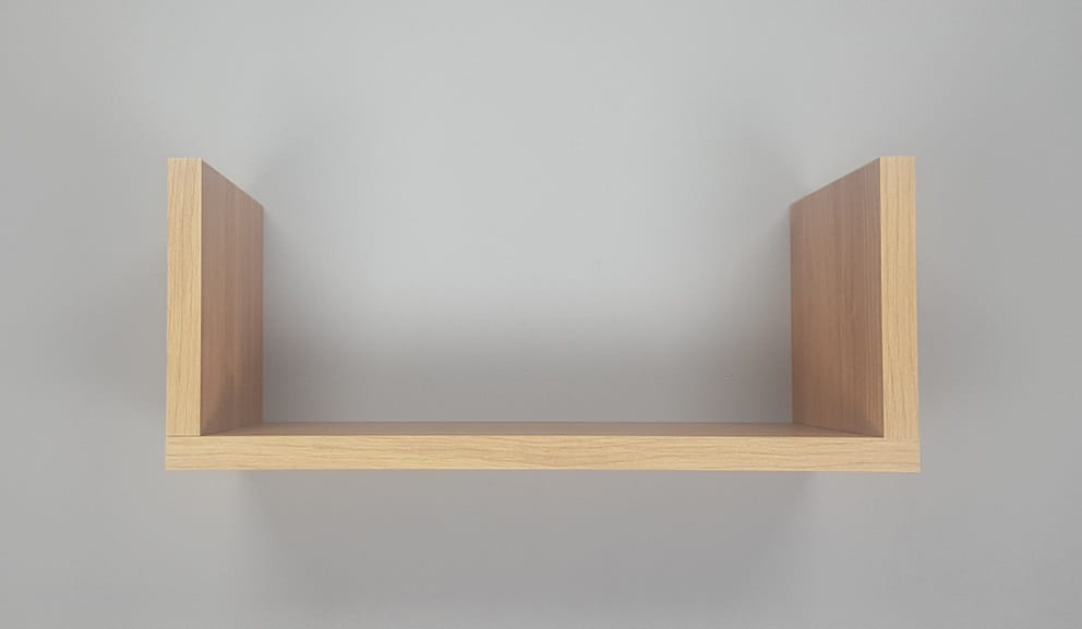 Półka posiada niewidoczne zawieszki z regulacją, po zawieszeniu dolega całą powierzchnią do ściany (nie odstaje w miejscu zawieszek).