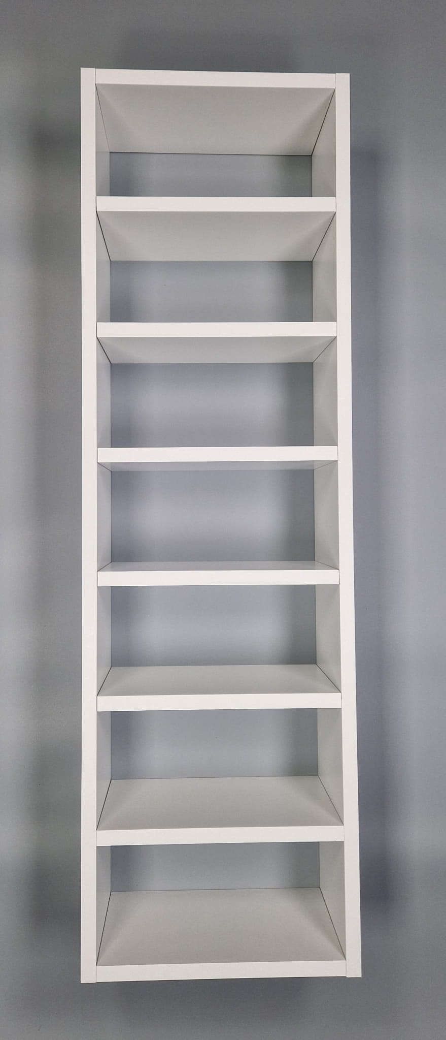 Półka posiada niewidoczne zawieszki z regulacją, po zawieszeniu dolega całą powierzchnią do ściany (nie odstaje w miejscu zawieszek).